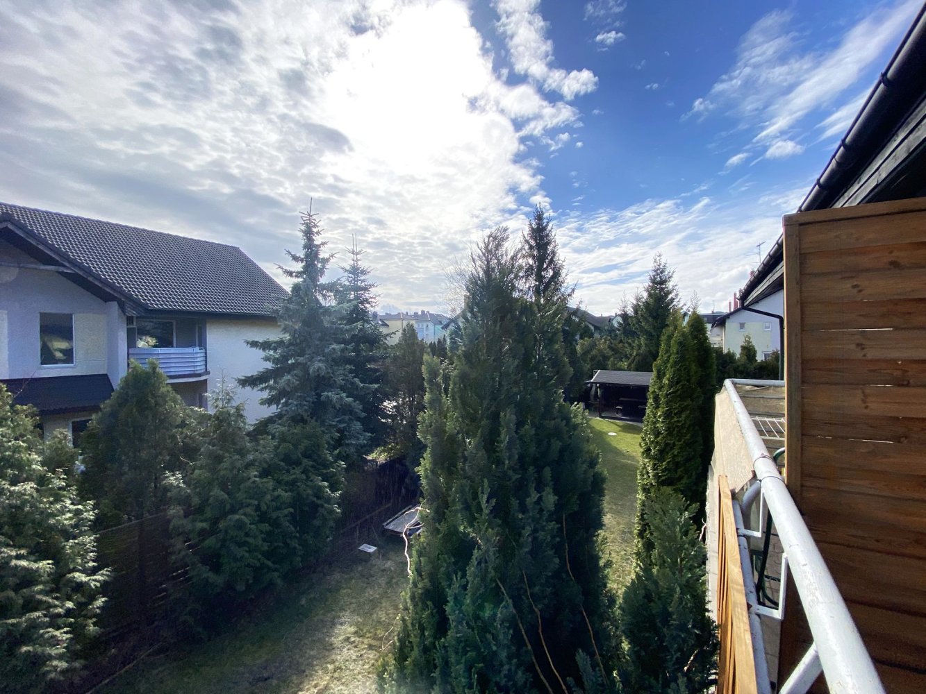 Mieszkanie jest jasne, ze świetnym widokiem z balkonu - na ogród i drzewa.